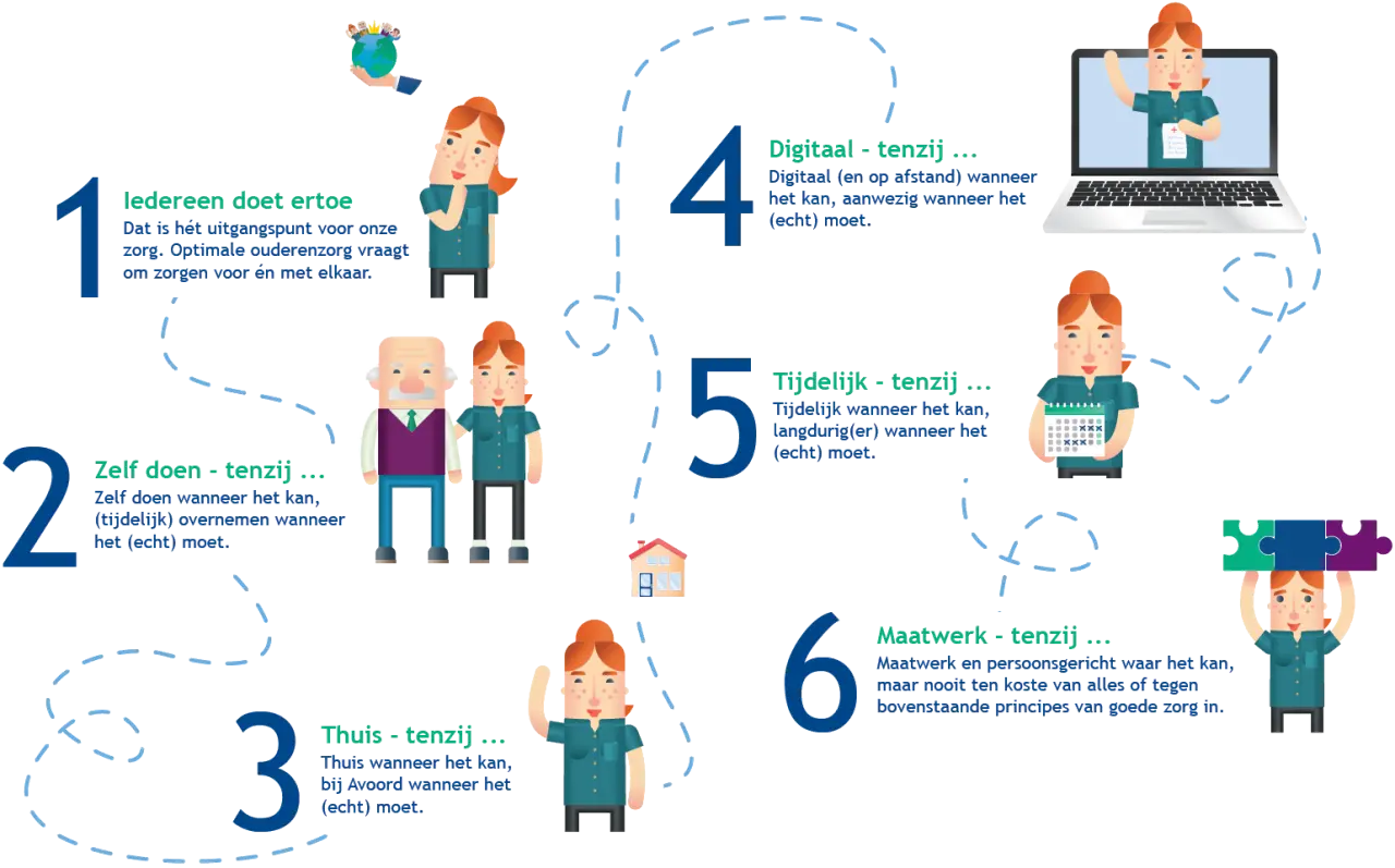 Bij Avoord vinden we dat iedereen ertoe doet en mee kan doen, ook als je zelf hulp nodig hebt. We sluiten aan bij het leven en de gewoonten van de cliënt, waarbij iedereen zoveel mogelijk betrokken blijft. Samen zorgen we voor en met elkaar.